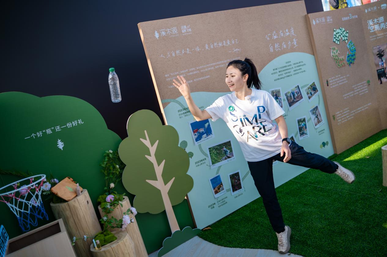 在环保行动方面,溪木源将展台打造为“自然疗愈站”,通过展出“还源自然计划”成果作,以及设置多项环保互动活动,如投递废弃空瓶兑换礼品,用小树形状的留言贴共同填满荒漠图案等,将“还源自然”理念融入可感知的互动体验,传递绿色生活方式。